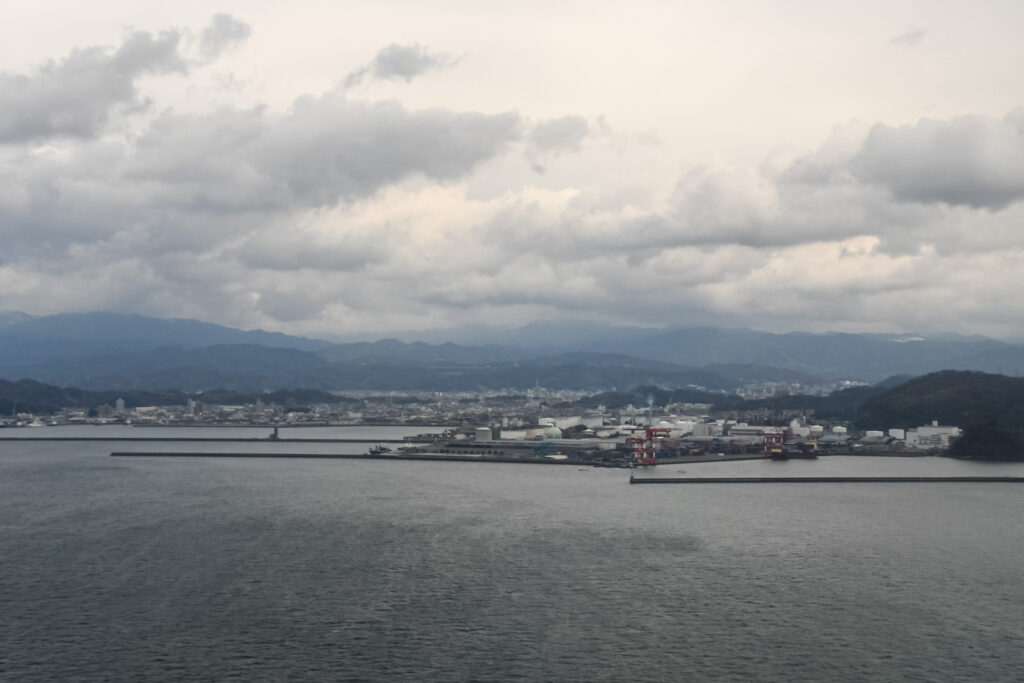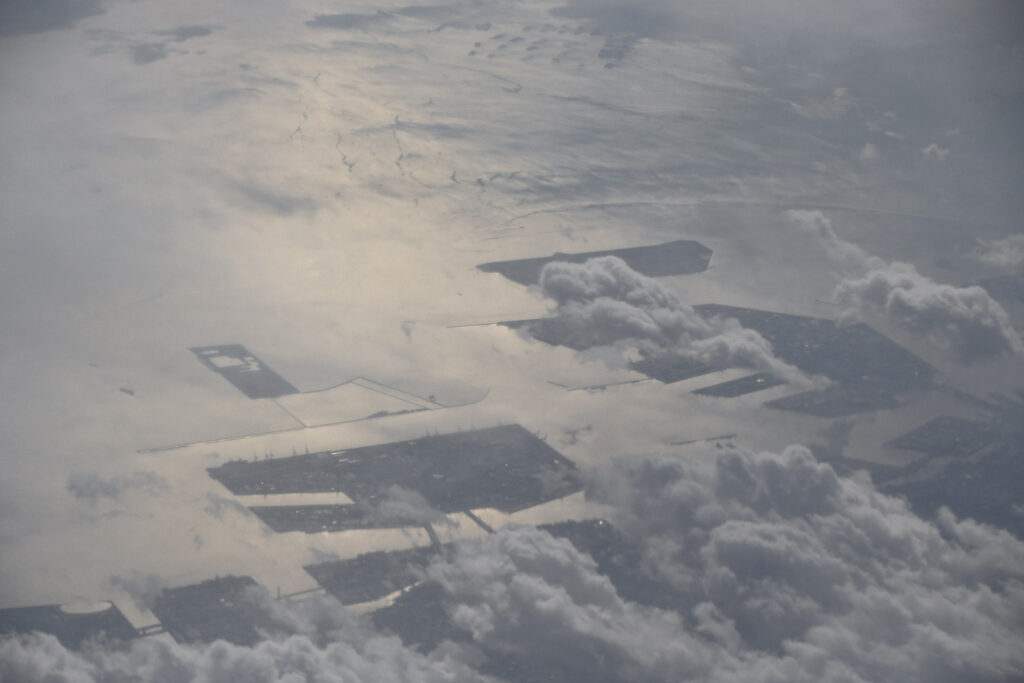 雲の切れ間から顔を出したのは大阪湾。大阪万博に神戸空港の国際化と、何かにつけて話題が多いこのエリア、今日本で一番明るいのはここやで!と言わんとばかりにこちらだけ雲が切れていました。