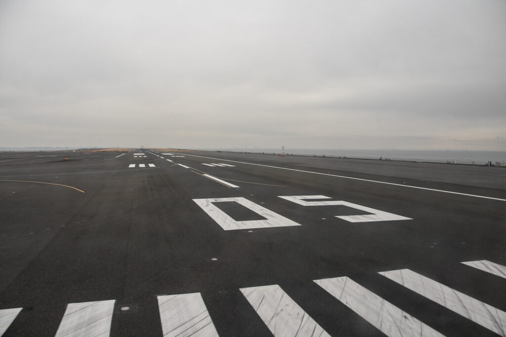 北風が吹く羽田空港では、松山便はD滑走路から離陸します。ちょうど出発機が空いている時間帯だったようで、すぐに滑走路へ進入、離陸することが出来ました。
